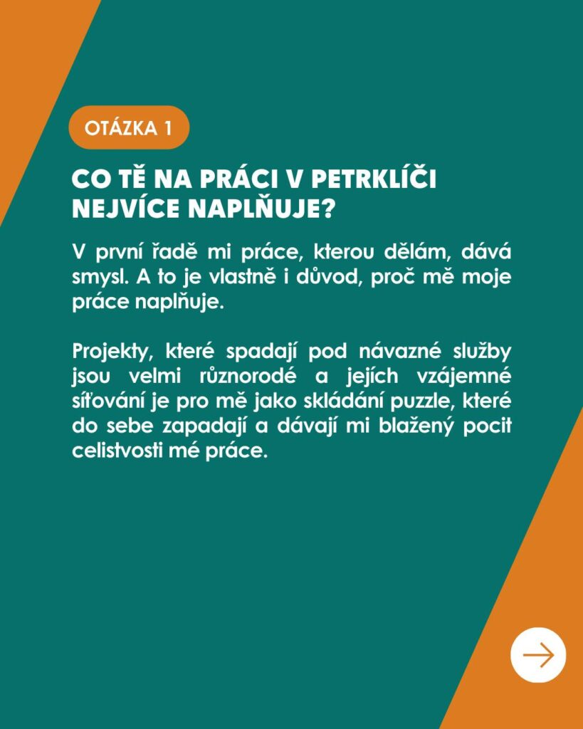 V našem seriálu rozhovorů vám postupně představujeme kolegyně a kolegy z různých koutů organizace – od těch, kteří pomáhají přímo v terénu, až po ty, kdo zajišťují chod služeb a podporu celého týmu.