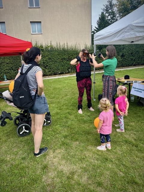 Proto jsme ve středu 10. září v centru Horoměřic společně s občany prožili odpoledne plné poznávání, zážitků a her. Na místě se lidé dozvěděli nejen veškeré informace o naší práci, ale mohli si také vyzkoušet například trénink paměti, gerontooblek coby simulátor stáří, jízdu na invalidním vozíku, interaktivní kvíz, ale i zábavné aktivity pro děti – od malování na textil, přes hraní pexesa až po opičí dráhu.