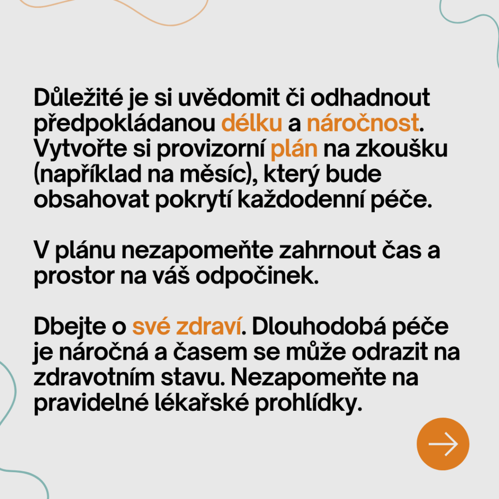 Dnes se v našem seriálu pro neformálně pečující a jejich blízké podíváme na tipy, jak zvládat péči v delším časovém období. Ta potřebuje plán, péči o sebe samého i případné vyhledání pomoci. Ku prospěchu může být také sdílení s lidmi, kteří si prochází podobnou situací.
